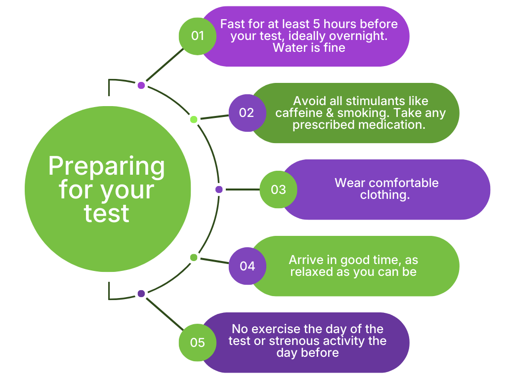 You lie down for approx 10 minutes before the test starts to get relaxed. During this time we will ask you some questions around your lifestyle and what a week would typically look like for you to build your calorie expenditure picture.