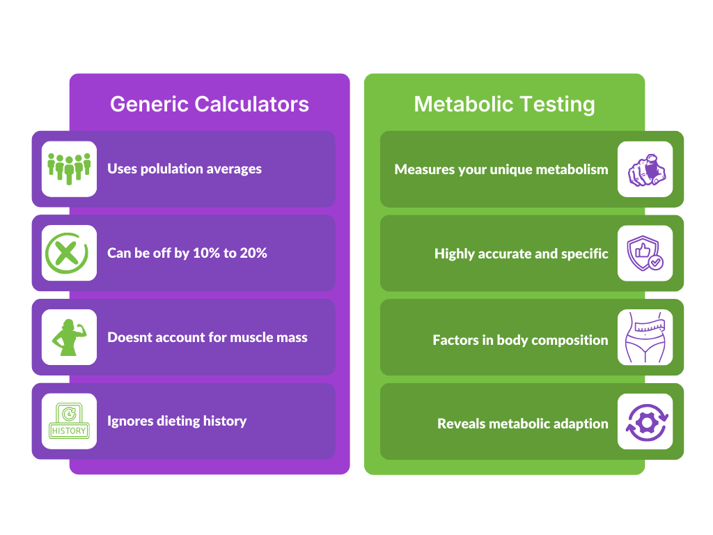 The problem is the data. That calorie calculator you’re using – it’s guessing. Two people can have the exact same stats – and their metabolisms can differ by 300-500 calories per day. That’s the difference between losing weight and gaining it while “dieting.”
