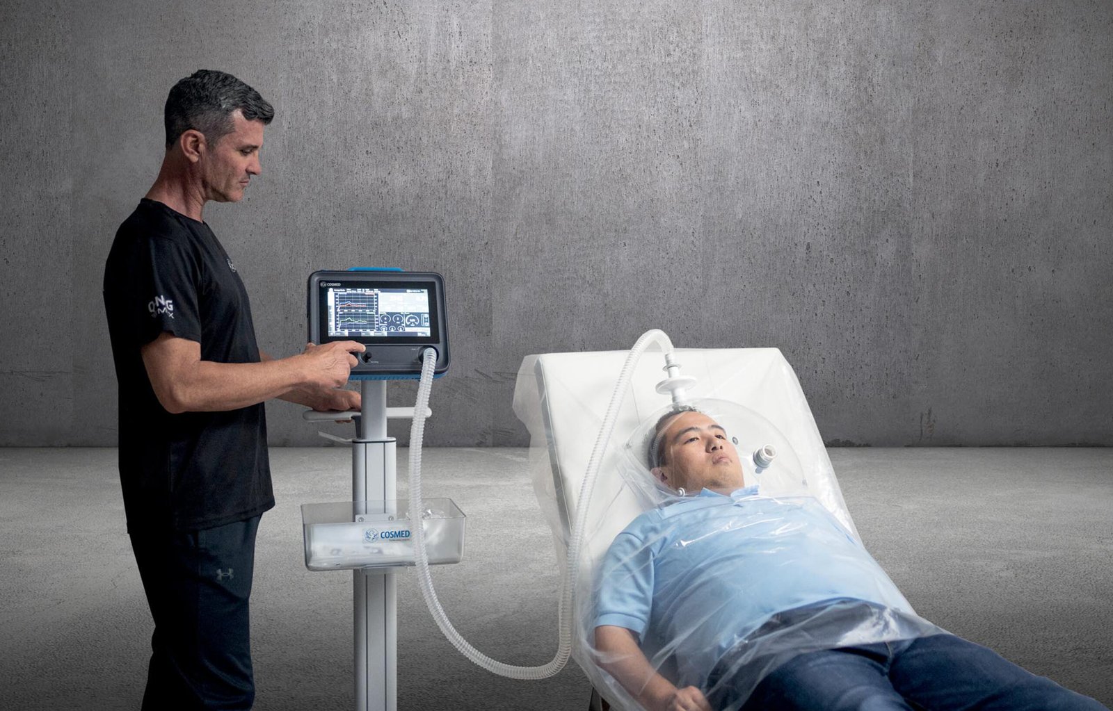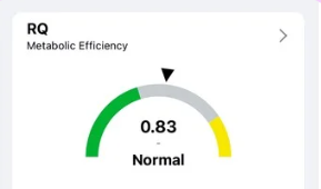 Every calorie you burn uses a specific amount of oxygen. Therefore we can accurately measure calorie burn by measuring the concentration of your breathing in and out, allowing for the environment which our sensor adjusts for. Measuring carbon dioxide (CO2) lets us calculate the Respiratory Quotient (RQ), which indicates whether your body is burning more fat or carbohydrates. An RQ near 0.7 means fat is the main fuel, while an RQ near 1.0 means carbohydrates are mainly being used.